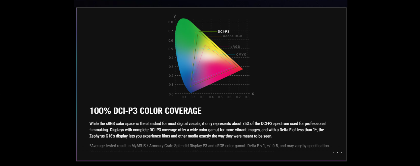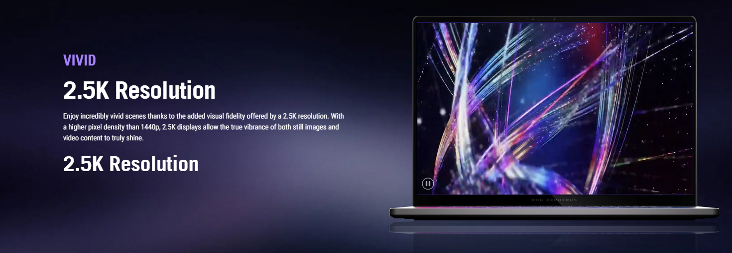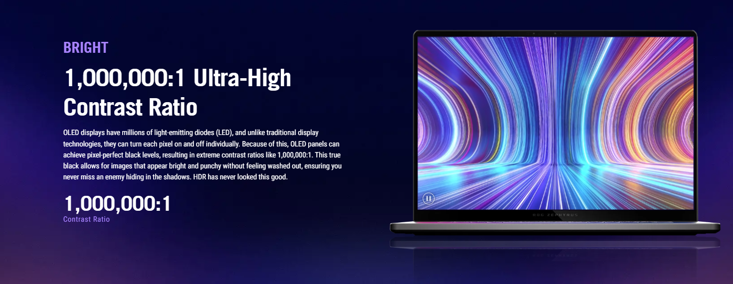 | Display | ROG Nebula Display 16-inch, 2.5K (2560 x 1600, WQXGA), OLED, Glossy, DCI-P3: 100% Refresh Rate: 240Hz, Response Time: 0.2ms, G-Sync, Pantone Validated |